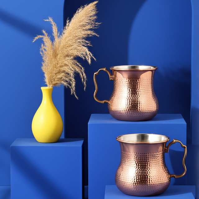 Découvrez l’authenticité et le raffinement de notre Mug en Cuivre Étamé, façonné à la main dans les ateliers traditionnels de Fès. Véritable pièce artisanale, il associe la noblesse du cuivre à la technicité de l’étamage, garantissant une utilisation alimentaire sûre et une expérience de dégustation unique. Idéal pour savourer vos boissons chaudes ou fraîches, ce mug conjugue élégance, durabilité et héritage marocain.