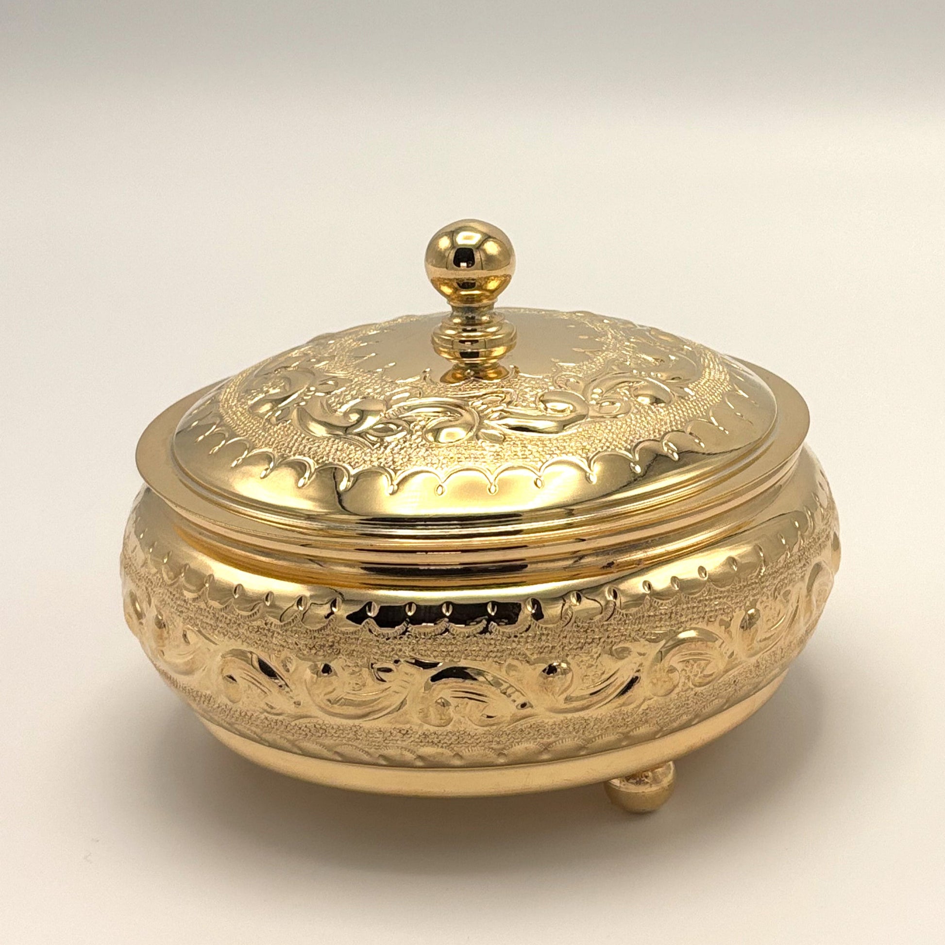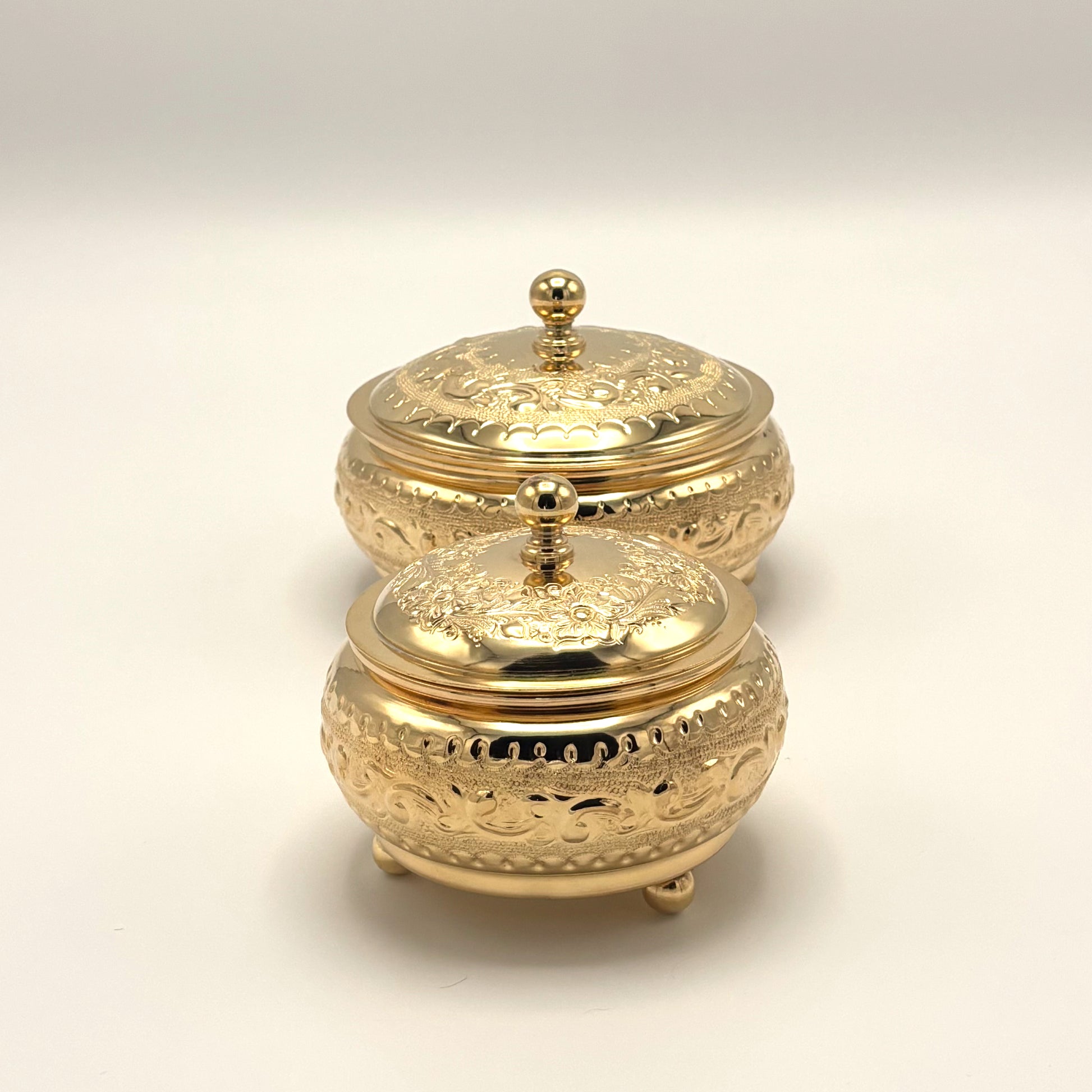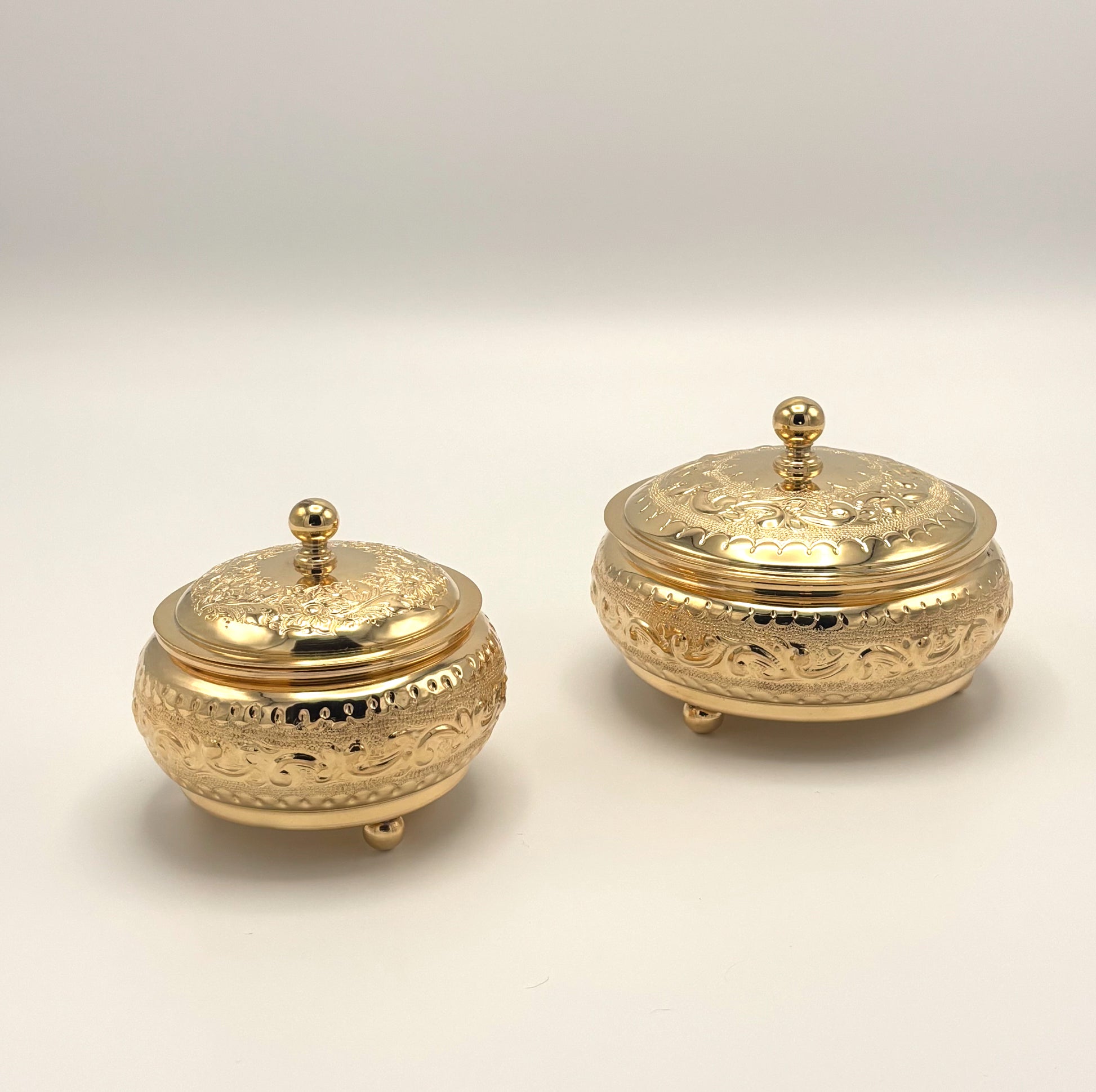 Plongez dans l’univers du raffinement avec Bliss, notre sucrier doré aux finitions luxueuses. Sculpté à la main dans du laiton de haute qualité puis délicatement plongé dans un bain de cyanure d’or 24 carats, Bliss se distingue par son élégance impériale et ses gravures ciselées qui célèbrent l’héritage de l’artisanat marocain.