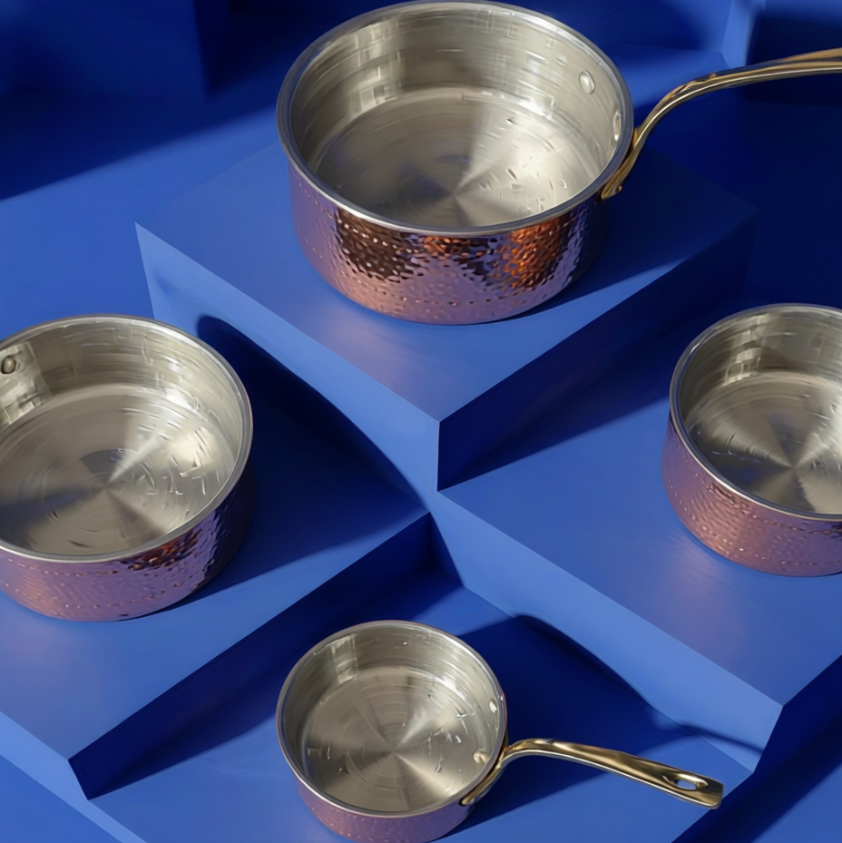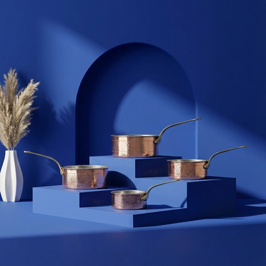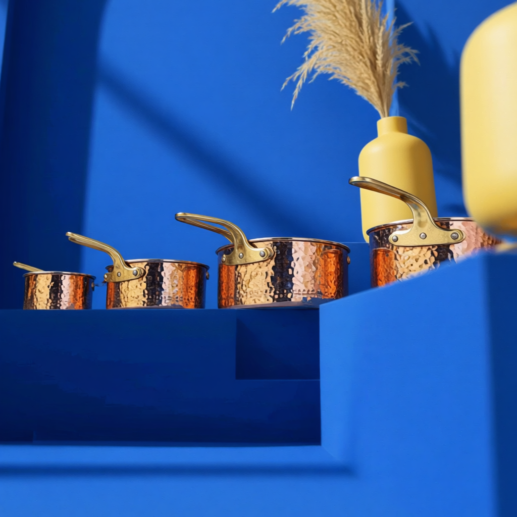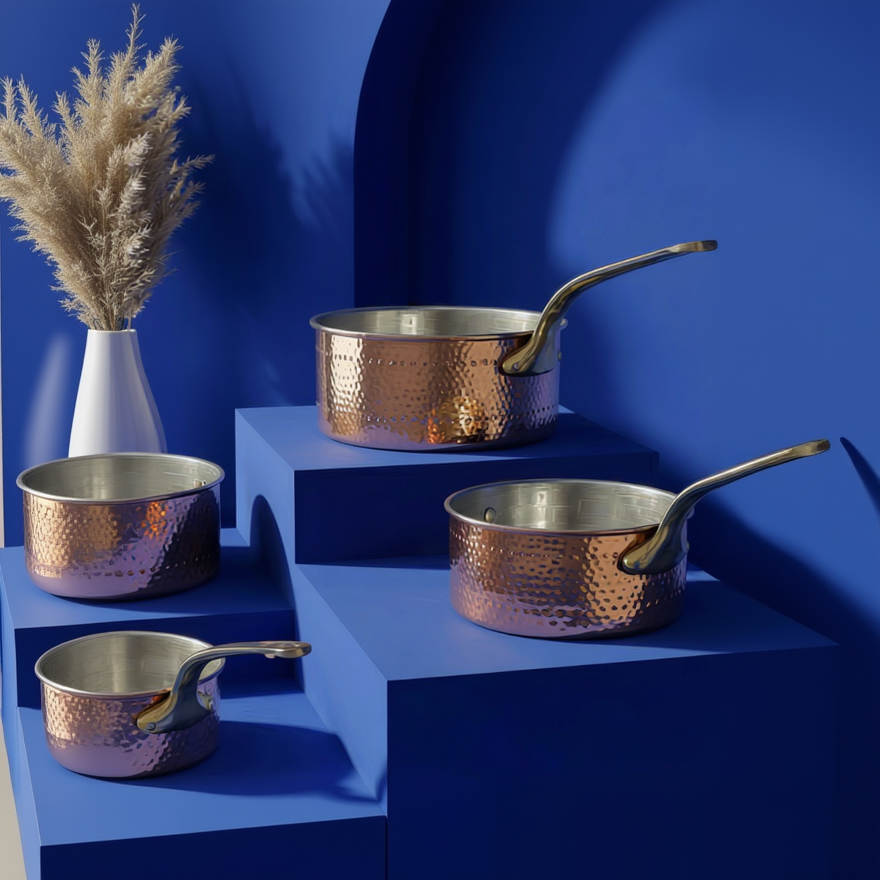 Utilisation : Idéal pour faire fondre, réduire vos sauces, bouillir ou mijoter avec une maîtrise parfaite de la température. L'ensemble peut également être exposé comme une collection artisanale apportant une touche de chaleur et d’élégance à votre intérieur.