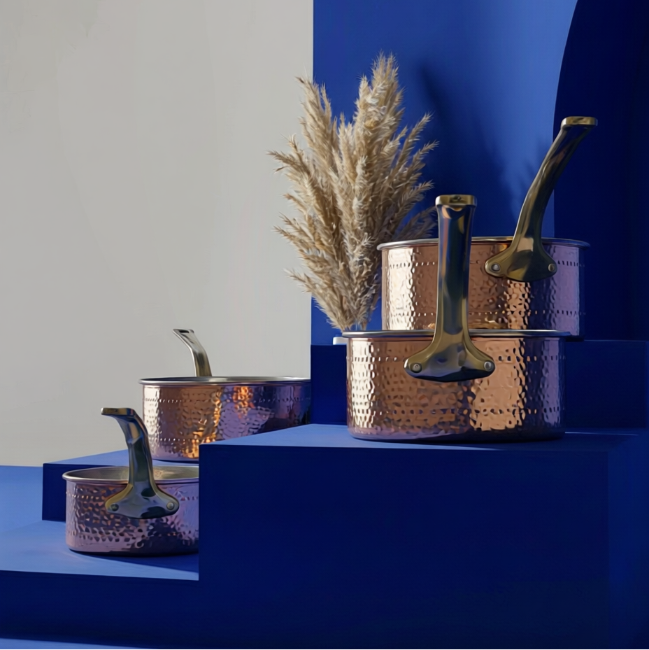 Découvrez l’authenticité et l’élégance de notre set de casseroles Bricco, façonné à la main dans les ateliers traditionnels de Fès. Alliant le savoir-faire ancestral marocain à la performance exceptionnelle du cuivre martelé, cet ensemble garantit une cuisson homogène et d'une grande précision. L’intérieur, protégé par un étamage artisanal (application d’une fine couche d’étain alimentaire), assure une utilisation sécurisée et une longévité optimale. À la fois spectaculaires et fonctionnelles, ces casseroles trouveront aussi bien leur place sur vos fourneaux que comme véritables pièces décoratives raffinées pour sublimer votre cuisine.