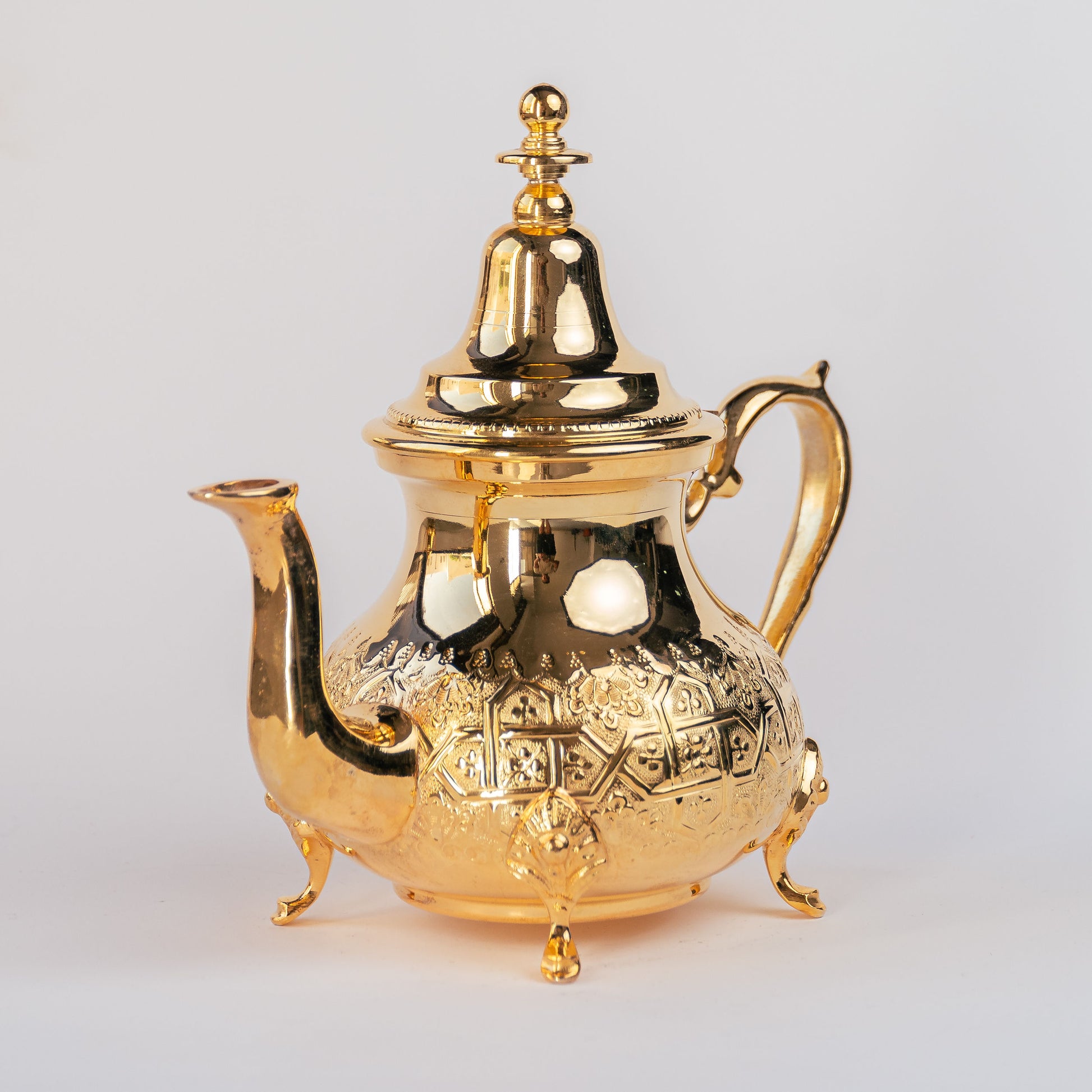 Plongez dans l’authenticité et le raffinement avec cette théière artisanale en laiton, couvert d'une fine pellicule d'argent et d'une dorure premium . Fabriquée à la main par des artisans marocains, elle incarne le mariage parfait entre tradition, fonctionnalité et esthétique. Que ce soit pour servir le thé à la menthe ou sublimer votre intérieur, cette pièce unique saura séduire par son éclat intemporel.