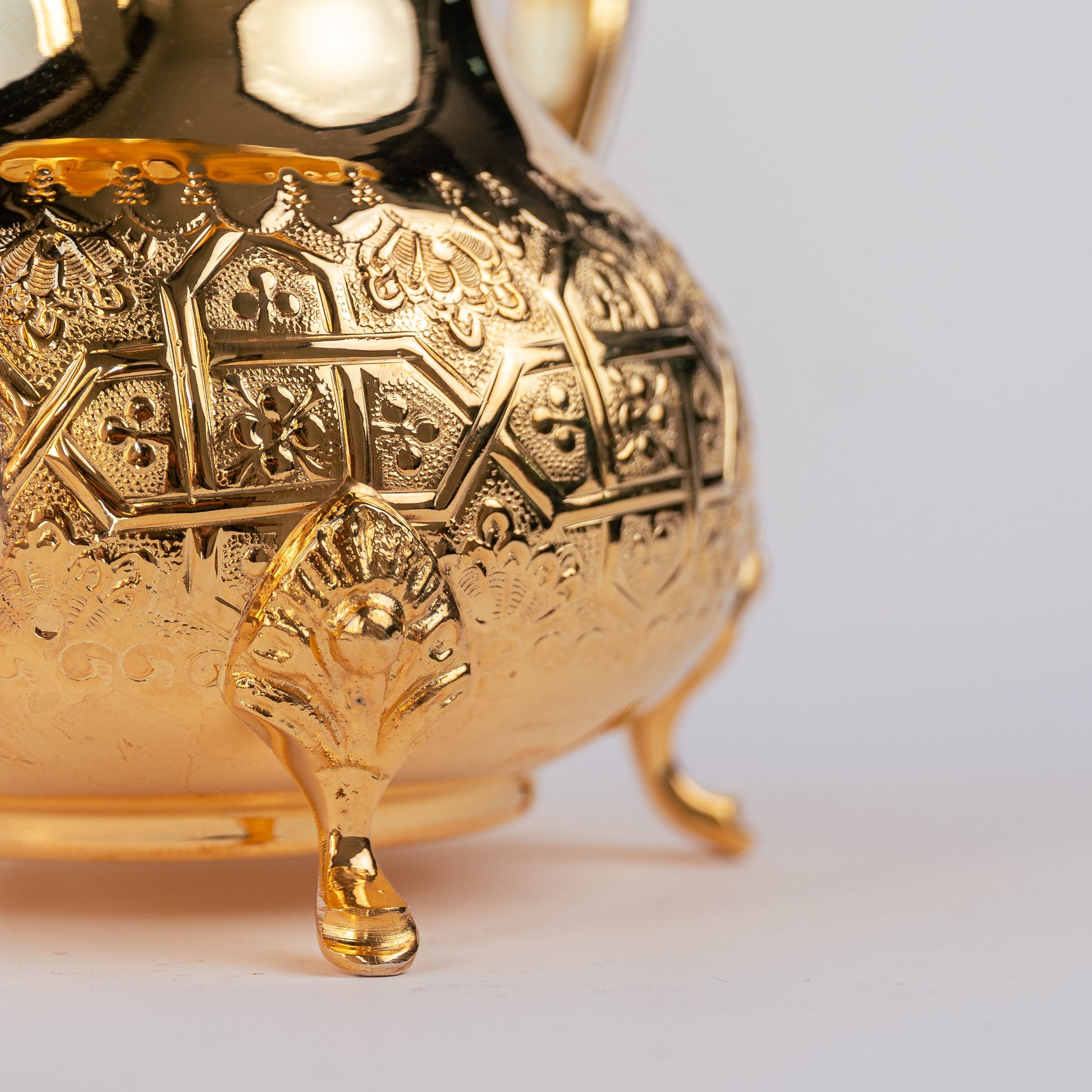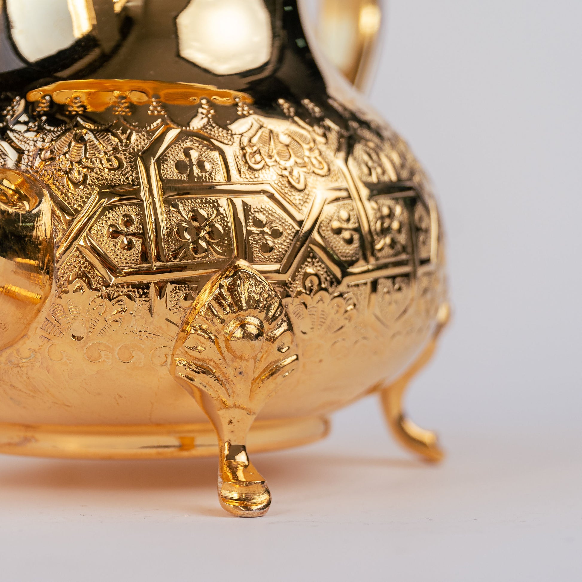 - Matériau : Conçue en laiton, couvert d'une fine pellicule d'argent et d'une dorure premium en cyanure d'or 24k, cette théière est travaillée avec soin pour offrir une durabilité incomparable et un éclat qui traverse les années.