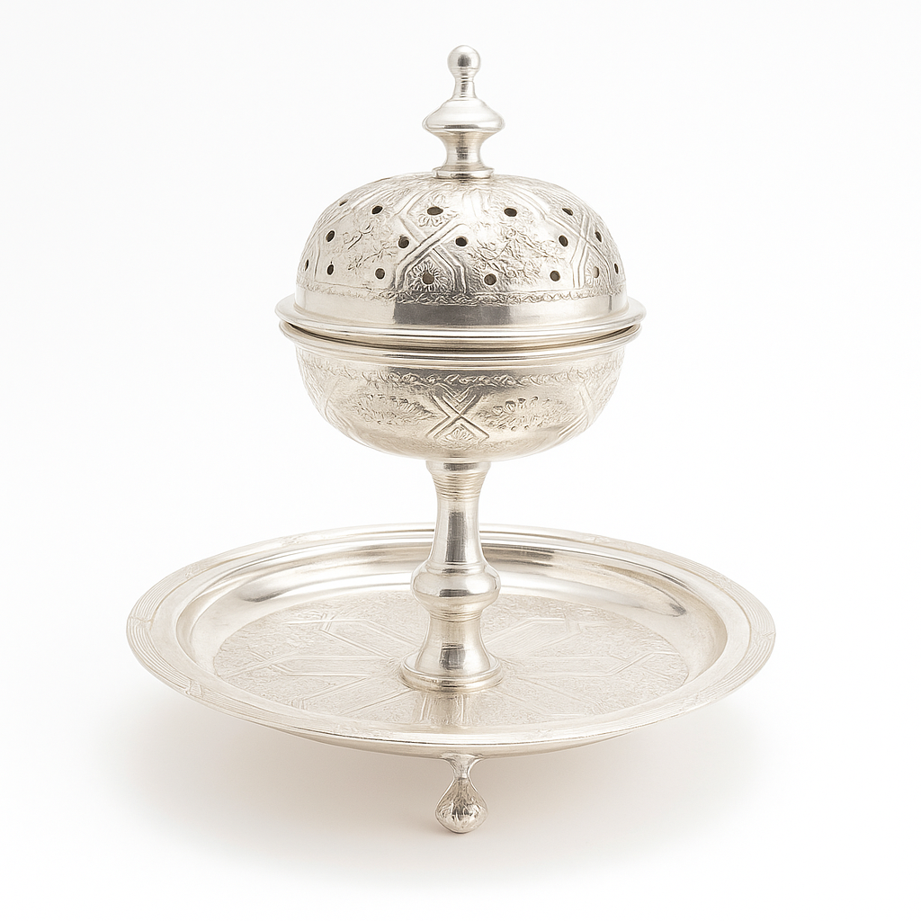 Ce brûle-encens marocain en laiton argenté est disponible en trois tailles différentes pour s'adapter à tous vos besoins ( S, M, L)