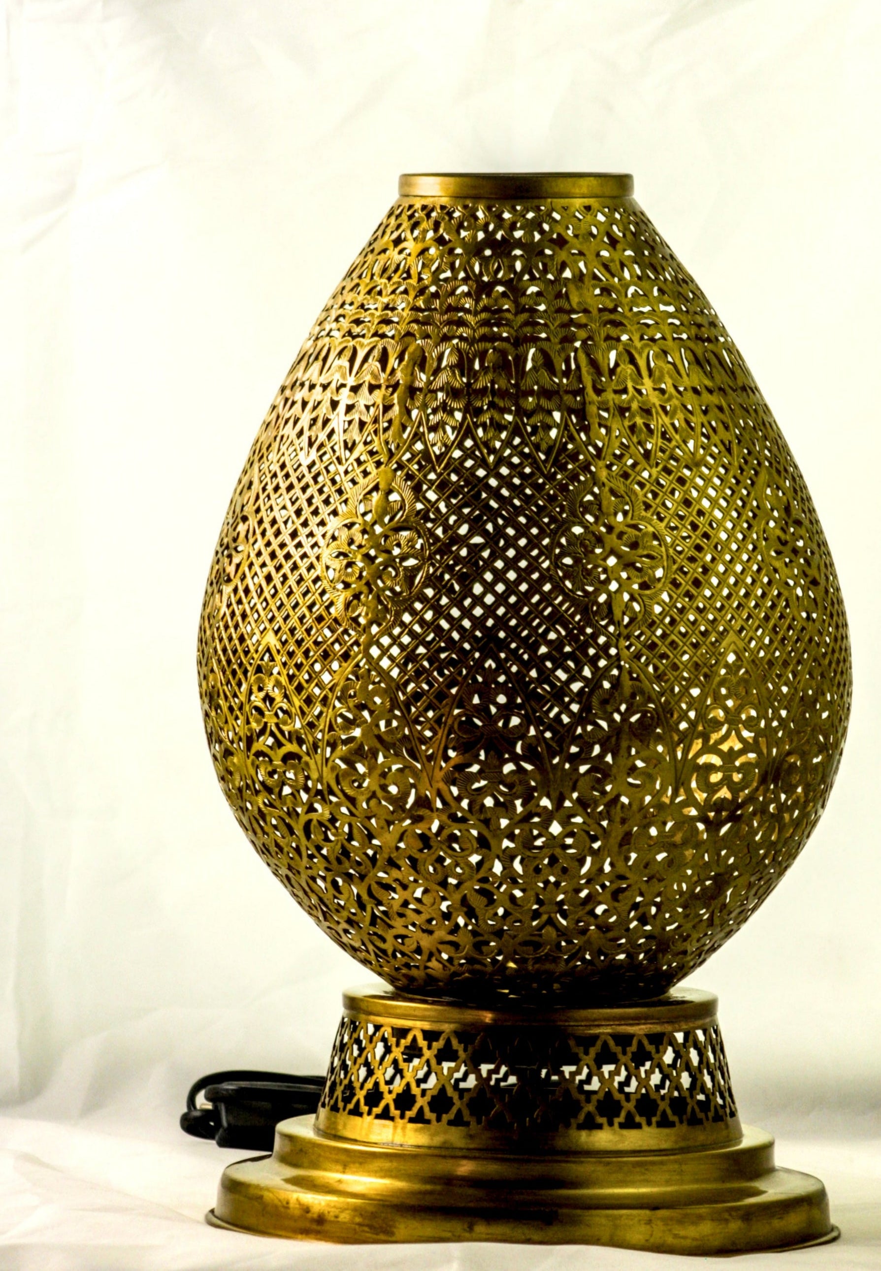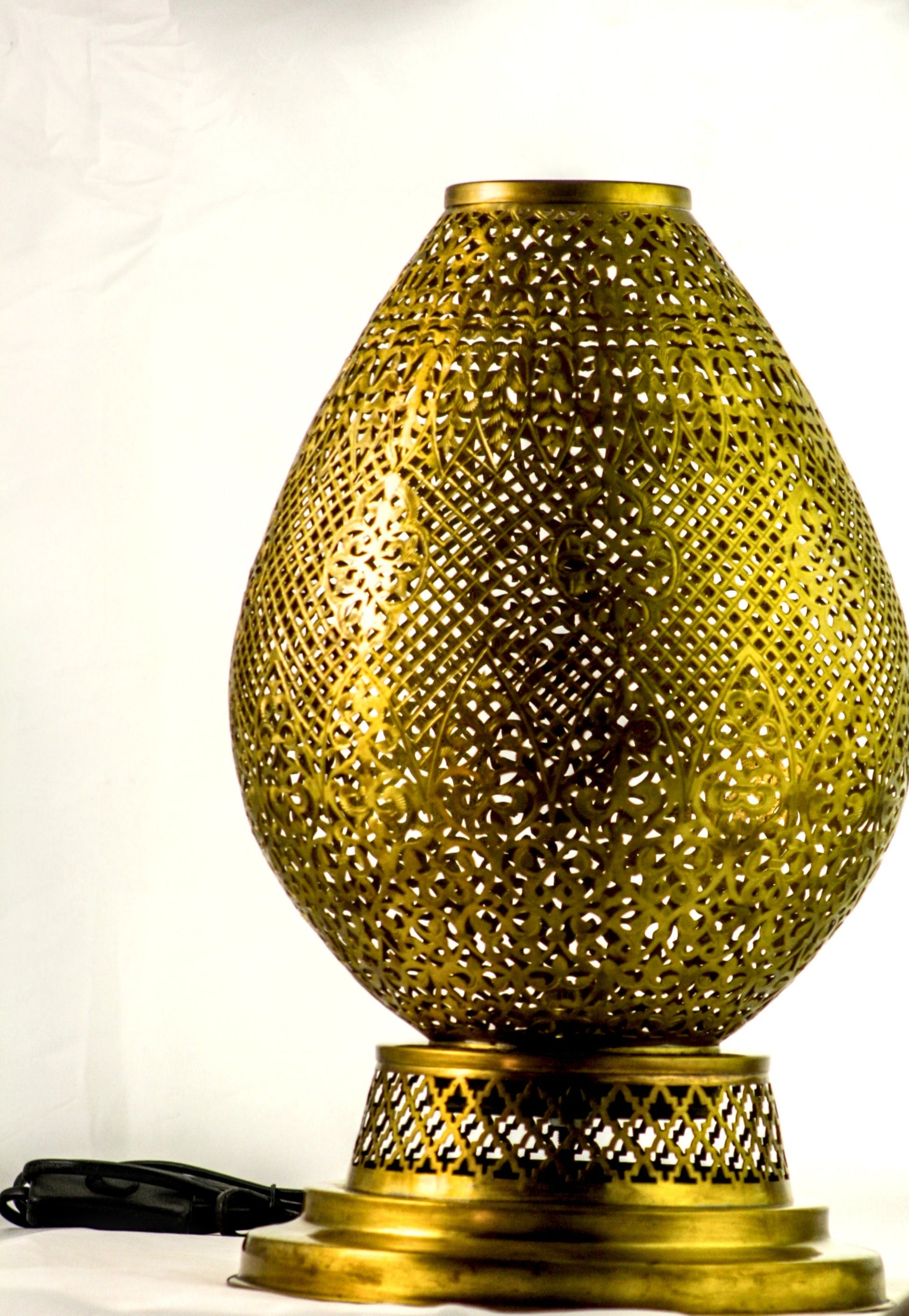 Apportez une touche d'élégance orientale à votre intérieur avec la lampe de table "Halo", une pièce maîtresse façonnée à la main par des artisans marocains. Sa silhouette harmonieuse et ses motifs finement ciselés projettent des jeux d'ombres et de lumières captivants, créant une ambiance chaleureuse et envoûtante.