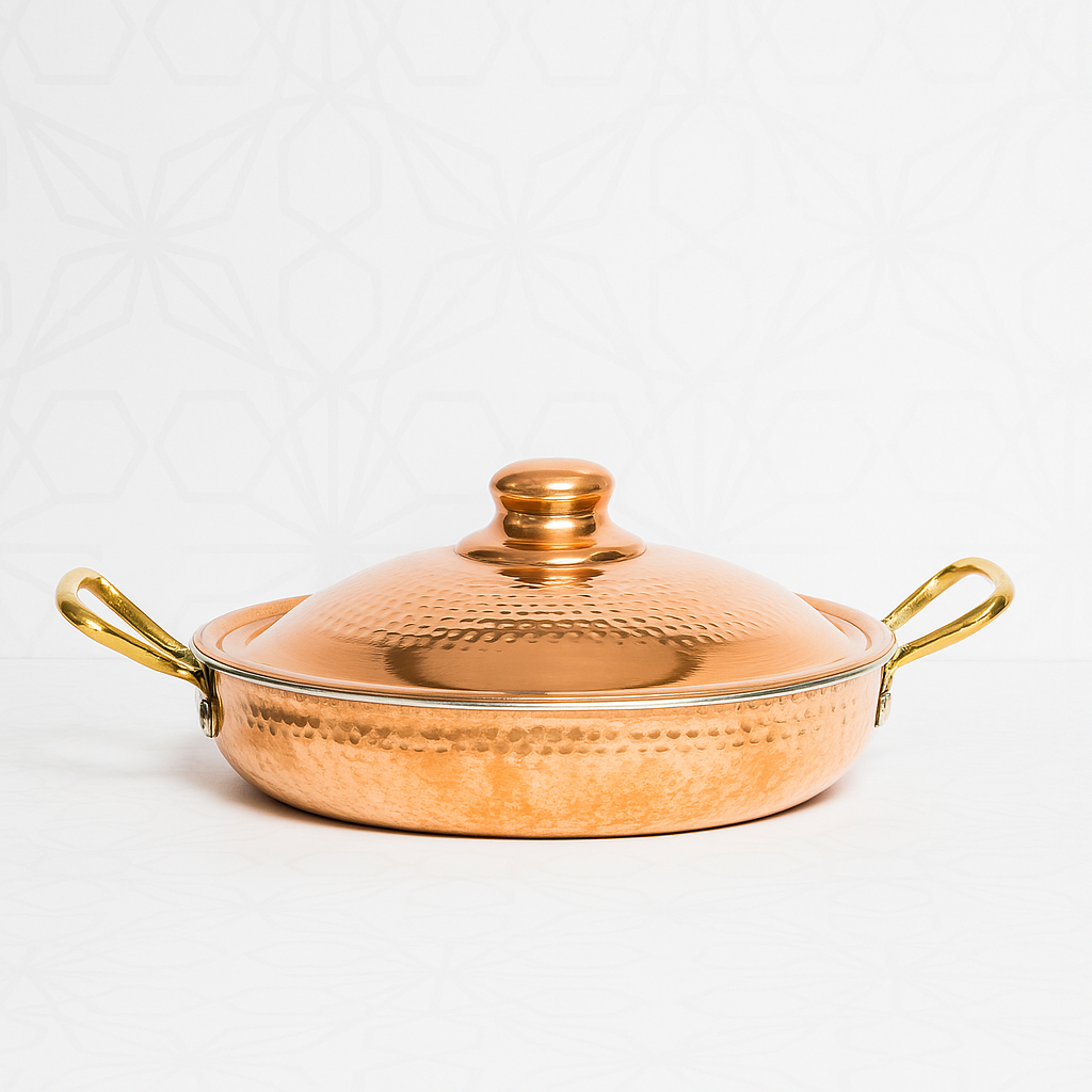 Alliez authenticité et performance culinaire avec notre Sauteuse en Cuivre Étamé, fabriquée à la main dans les ateliers artisanaux de Fès. Véritable chef-d'œuvre d’artisanat marocain, cette pièce associe la noblesse du cuivre à la technicité de l’étamage, offrant une conduction thermique exceptionnelle et un usage sécurisé. Idéale pour mijoter, saisir ou préparer vos plats avec précision, elle se distingue aussi par son élégance intemporelle qui sublimera votre cuisine.