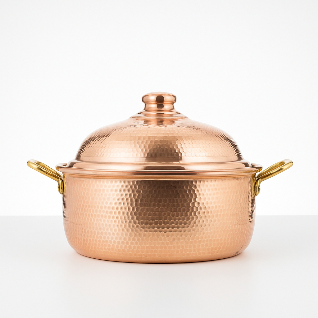 - Le cuivre assure une diffusion homogène de la chaleur, permettant une cuisson lente et équilibrée.